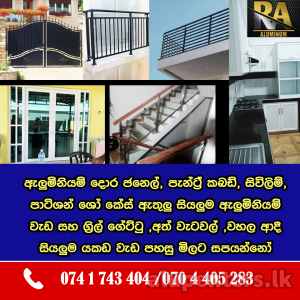 We are providing all kind if aluminium fabrication works. Aluminium doors, windows, pantry cupboard,... (වැඩිදුර කියවන්න)